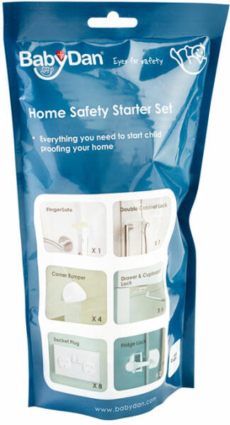 A 22 darabos biztonsági kezdőkészlet tartalmazza az összes olyan biztonsági terméket, ami szükséges egy biztonságos otthon kialakításához. A termékek biztonságot nyújtanak a gyermek számára, amikor mozgékonyabbá válik és elkezdi egyedül felfedezni a körülötte lévő világot. Bármennyire is igyekszünk, nem tudjuk a kis örökmozgókat mindig szemmel tartani. Így a veszélyes helyekre való belépés korlátozása megóvja őket a sérülésektől. A BabyDan Starter Kid biztonsági csomag az alábbi termékeket tartalmazza:8215 BabyDan Ujjvédő ajtóra, 1 db - megakadályozza, hogy a gyermek odacsukja az ujját az ajtóba, valamint hogy a huzat becsapja az ajtót8221 BabyDan Elektromos háztartási berendezésekhez zár, 2 db - megakadályozza az elektromos készülékek (pl. hűtőszekrény, fagyasztó) nem kívánt kinyitását8257 BabyDan Konnektorvédő sapka, 8 db - csökkenti az áramütés kockázatát, mivel megakadályozza, hogy a gyermek a konnektorba dugja az ujját8265 BabyDan sarokvédő, 4 db - csökkenti az éles bútorsarkak okozta sérülések kockázatát8267 BabyDan Zár szekrényajtóra és fiókra, 6 db - megakadályozza a gyermekeknek a szülők által nem kívánt szekrények és fiókok kinyitását, valamint hogy a gyerekek lépcsőként használják a kihúzott fiókokat8269 BabyDan zár szekrényajtóra (fogantyúkra erősíthető), 1 db - zár szekrényajtóra, amely kétszárnyú ajtók rögzítésére alkalmas (fogantyúkra erősíthető)