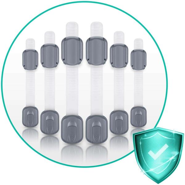 Ricokids Szekrényzár: Biztonság a kicsiknek ? 6 db praktikus, szürke szekrényzár, mely megakadályozza, hogy gyermeke kinyissa a szekrényeket és fiókokat. A 3M ragasztóval ellátott zárak könnyen felszerelhetők, nem károsítják a bútorokat, és eltávolításuk is egyszerű. Főbb jellemzők:Könnyű felszerelés: Nincs szükség szerszámokra! Egyszerűen tisztítsa meg a felületet, húzza le a védőfóliát és nyomja erősen a helyére. Erős tapadás: A bevált 3M ragasztó biztosítja a tartós rögzítést. Állítható hossz: Alkalmazkodik a különböző méretű bútorokhoz. Tartós anyag: Különlegesen erős műanyagból készült, UV-védett, így nem fakul ki. Csendes működés: Nem zavarja a nyugalmat. Esztétikus megjelenés: Harmonikusan illeszkedik a bútorokhoz. CE tanúsítvánnyal rendelkezik (Rohs) 2011/65/EU EN71-3 irányelvA csomag tartalma: 6 db szürke szekrényzár Méretek: 19x3,4 cm Biztonságban a kicsik: Tartsa biztonságban gyermekét, és nyújtson számára biztonságos felfedező környezetet! A szekrényzárak megakadályozzák, hogy a kicsik hozzáférjenek a veszélyes tárgyakhoz vagy anyagokhoz. Praktikus és esztétikus megoldás: A Ricokids szekrényzárak nem csak biztonságosak, de esztétikusak is, így nem rontják el otthona megjelenését.